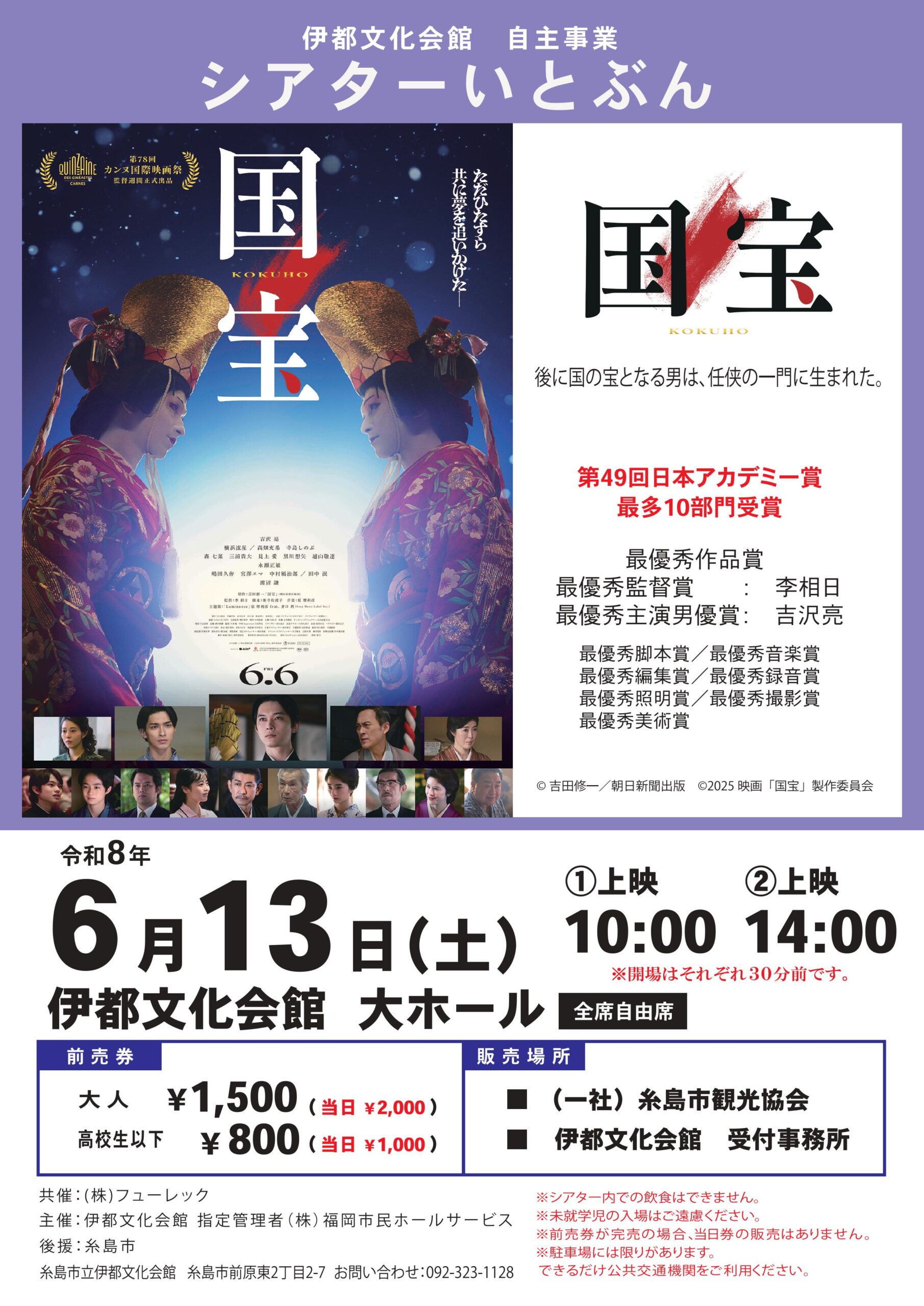 チケット販売場所:(一社)糸島市観光協会・伊都文化会館 受付事務所