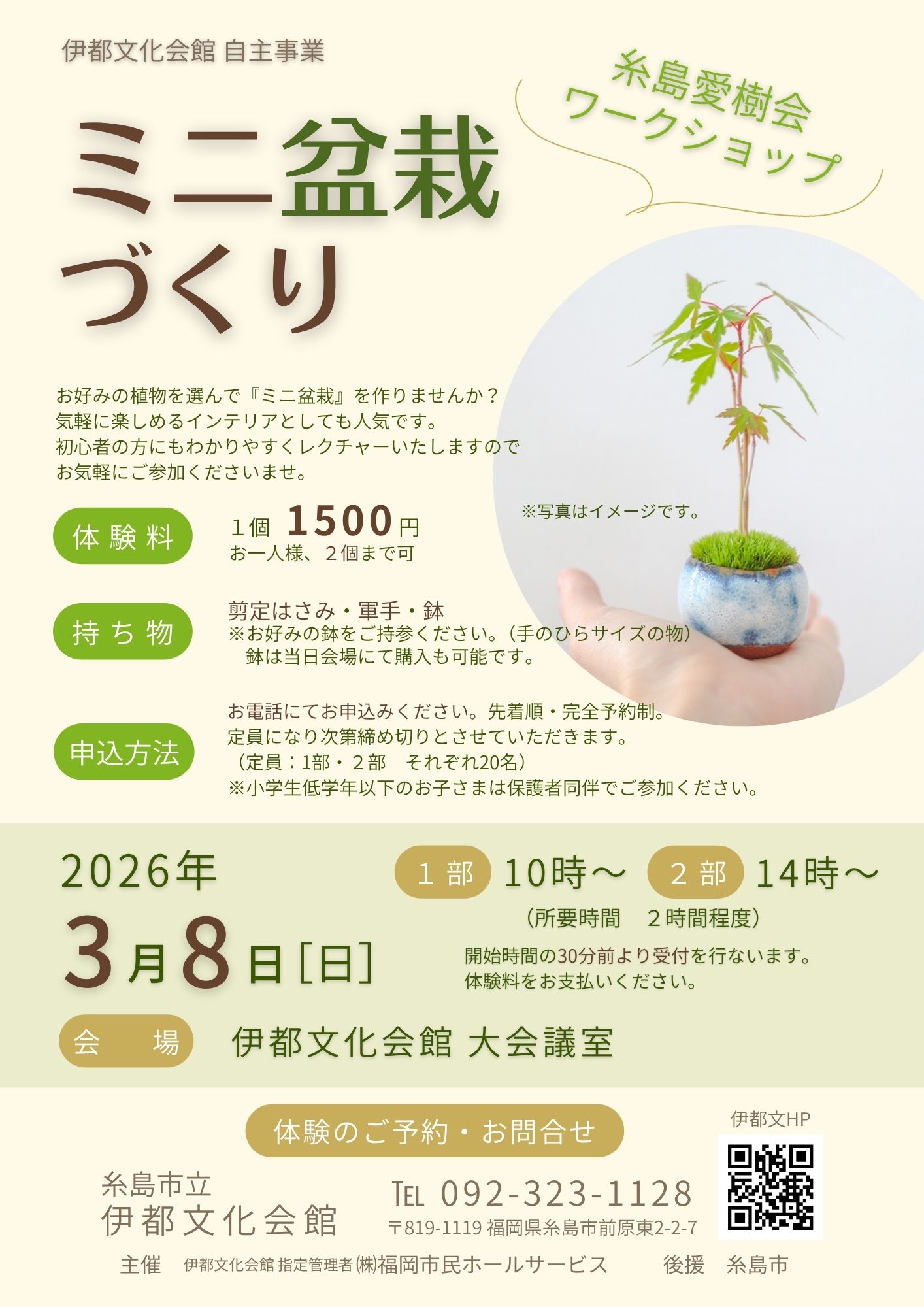 ミニ盆栽づくり(糸島愛樹会ワークショップ・伊都文化会館 自主事業)